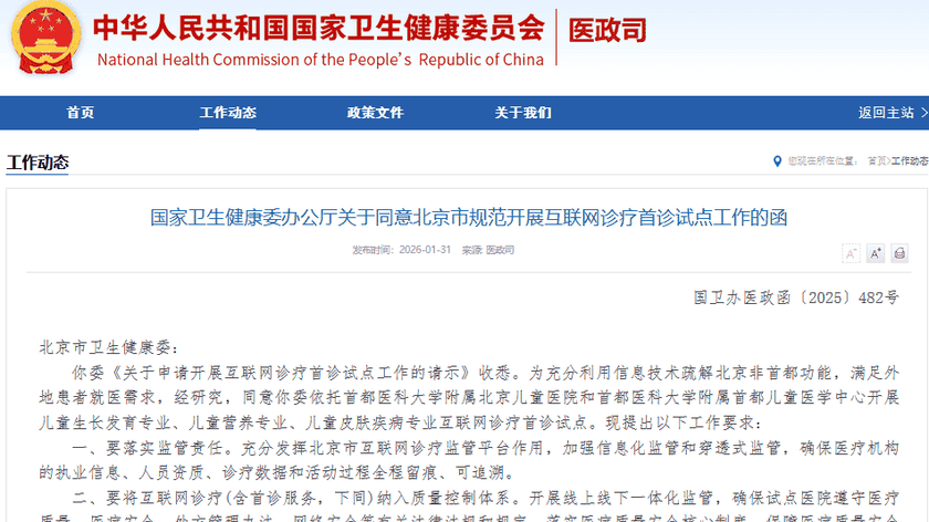 互联网医疗 | 首诊终于放开了!北京启动互联网诊疗首诊试点,含三个儿科专业